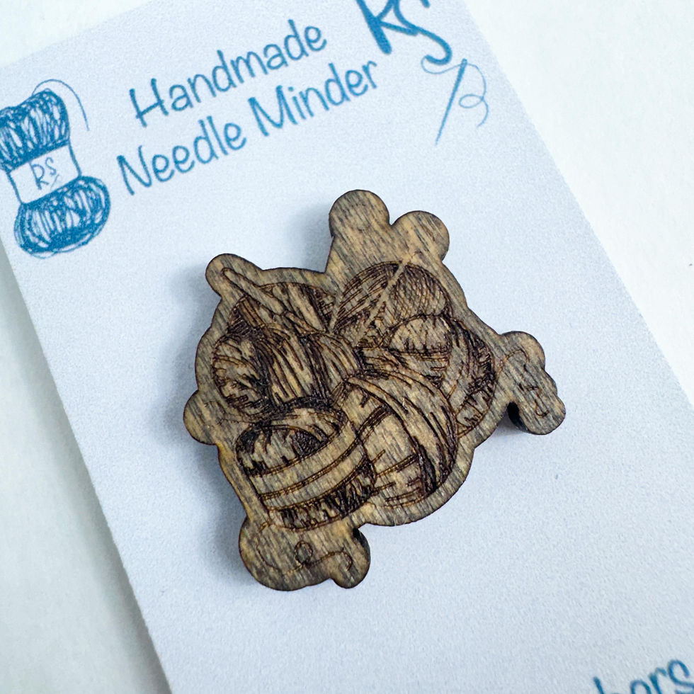 Handmade Engraved Wooden Needle Minder Yarn Themed - great cross stitch gift